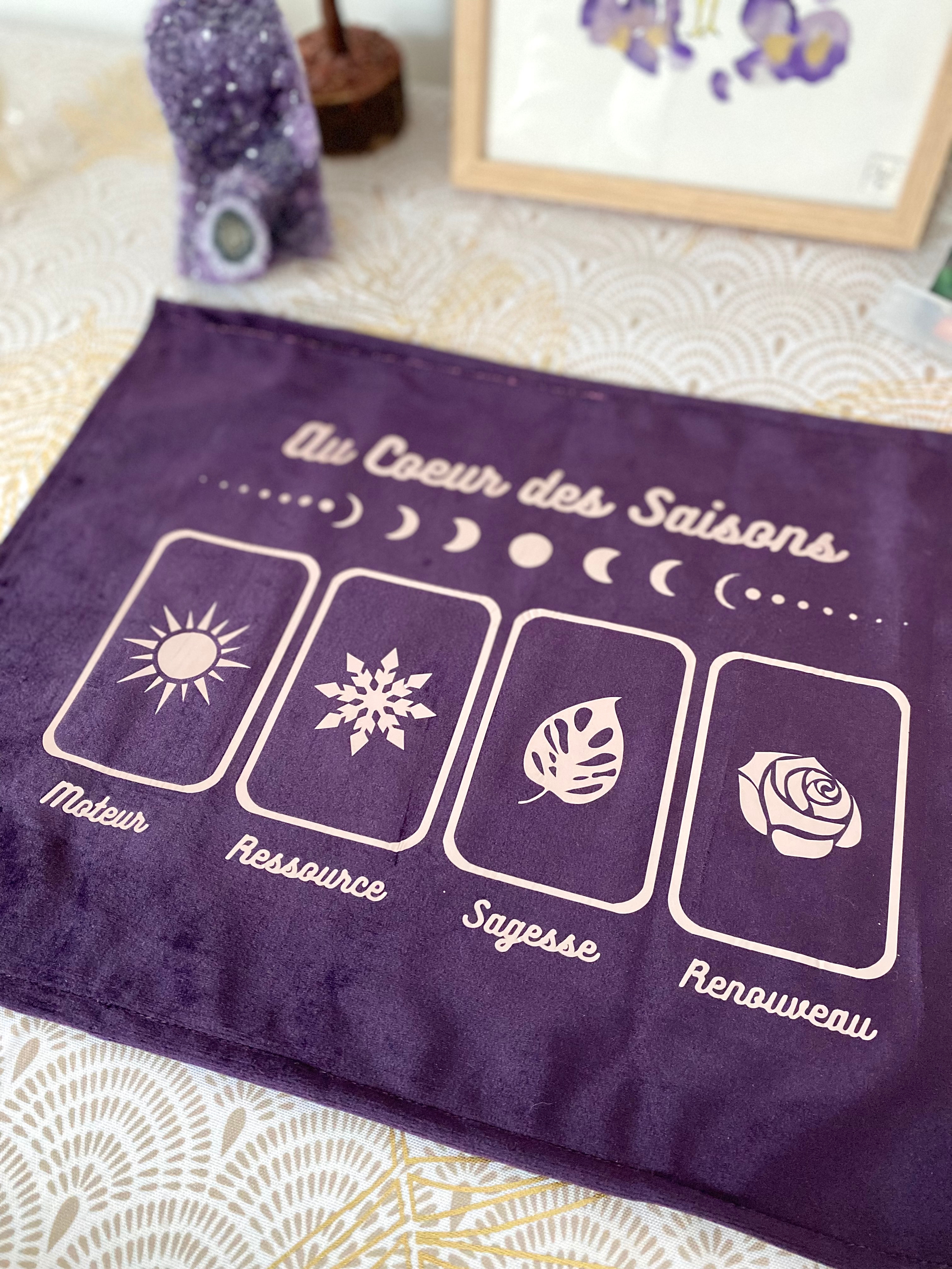 Ce tapis de tirages qui se base sur les énergies des 4 saisons te propose une méthode de tirage à la fois générale et complète, que tu peux utiliser pour toi-même ou pour tes consultants.